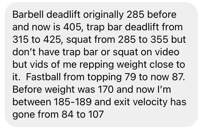 So, I researched and applied the best methods for baseball performance and went from 170 lbs to 200 lbs, dropped my 60 from a 7.5 to 6.8, and hit for more power.